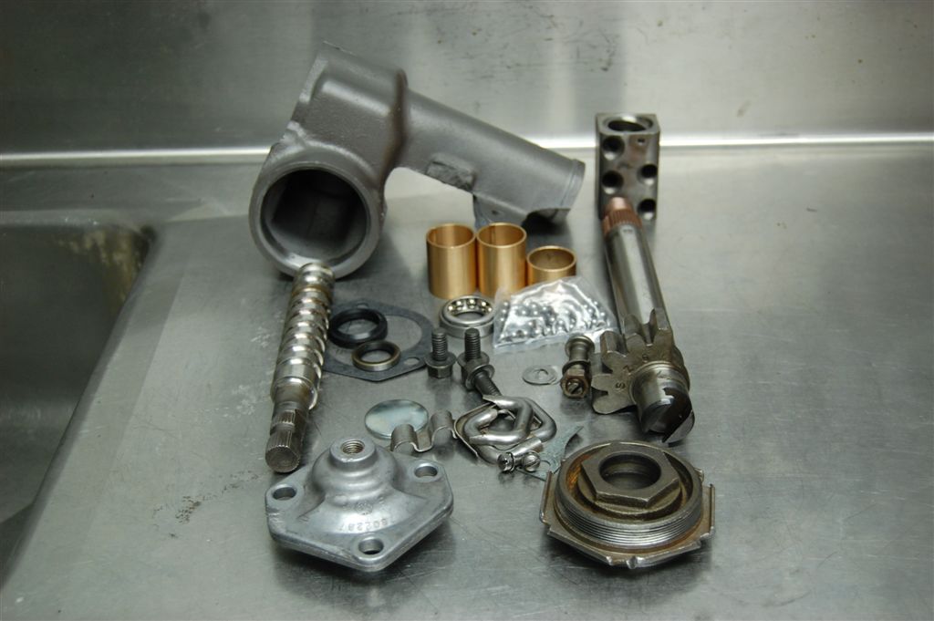 The pitman shaft should rotate freely in the gear box bushings. If there are any tight spots, a few taps with our plastic covered hammer loosens things up. This is standard bushing seating practice and will not harm anything. Turn the gear box and tap the shaft in at least four places to seat the bushings.